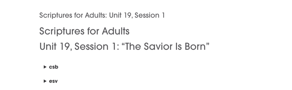 **Leader, in case mobile service in your area is too slow or spotty for easy access for your group members during group time, you can click on the link for “CSB PDF download” or “ESV PDF Download” and have a one-page, translation specific PDF with the Scripture passages that you can print, copy, and hand out to group members.