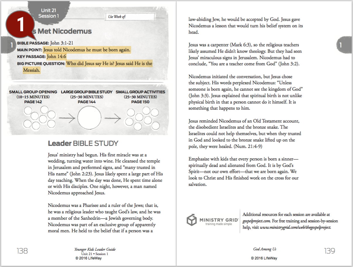 The following is a quick prep guide for teaching a younger kids or older kids session of The Gospel Project for Kids. In about 15 minutes, you can get the big ideas and major points of a session and know it enough to maneuver through the session with confidence and clarity.