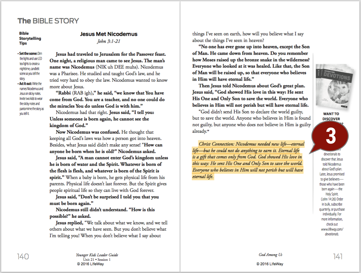 Take an extra minute and make sure you understand how the Christ Connection relates to the story. This is the main take-away of the session, so you will want to make sure it is clear to you.