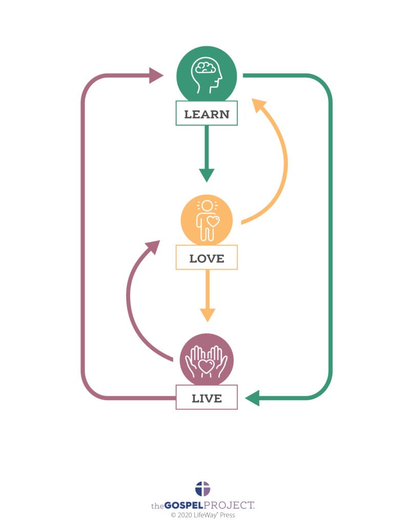 - Learn, Love, Live: While a discipleship foundation that includes kids understanding who God is, loving God because of who He is and what He has done, and then living on mission in gratitude for God has always been part of The Gospel Project for Kids, it will be emphasized more in this cycle. The leader guides will be framed around this triad of “learn,” “love,” and “live” to make it clearer for teachers what they are seeking to accomplish in each section. Also, while the kids resources will include all three elements, each of the three hours will focus on one a bit more. The main content will focus more on “learn,” while the worship hour add-on will focus on “love,” and finally, the new midweek add-on will focus on “live.”