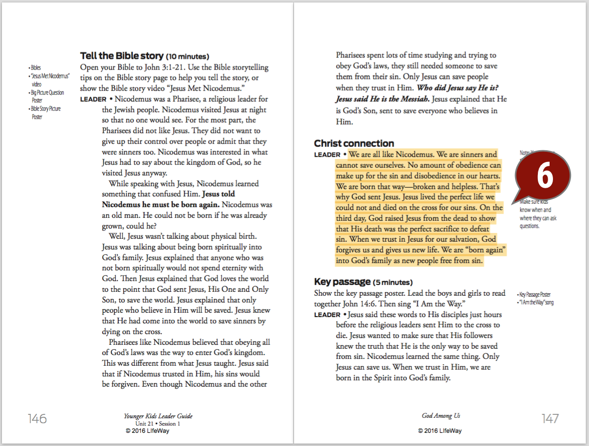 Take an extra minute and make sure you understand how the Christ Connection relates to the story. This is the main take-away of the session, so you will want to make sure it is clear to you.
