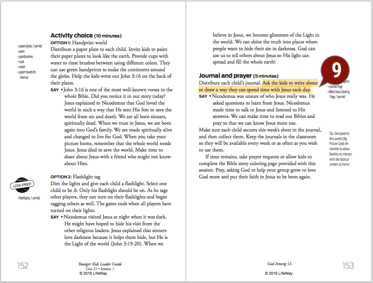 The following is a quick prep guide for teaching a younger kids or older kids session of The Gospel Project for Kids. In about 15 minutes, you can get the big ideas and major points of a session and know it enough to maneuver through the session with confidence and clarity.