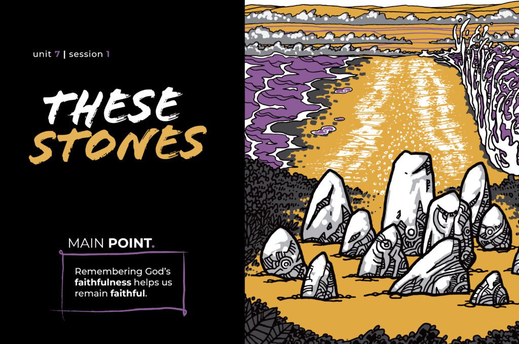 FOR THE STUDENT: Students can use an actual stone and draw a scene on it. They can also keep a yearly journal, make notes in their phones, wear a piece of jewelry, take photos and hang them in their rooms, paint a picture of their own, or write a song or a poem. There are many ways to remember God’s faithfulness.