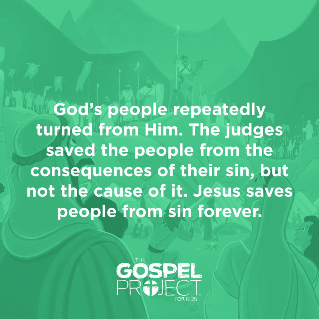 But that is not what we are called to do. It is not our primary mission. Now, hear me out for a minute. Yes, we are called on as kids leaders to present the gospel to our kids, but we are not the ones God called on to do this primarily. Parents are. The parents of our kids have been given this mission as their primary one. As kids ministry leaders, we have been called on to support them—to echo them to their kids. This was the failure of the generations in Judges 2. The next generation failed to love the gospel, not because of the failure of Bible study leaders (I know, they didn’t quite exist then, but you get the idea). The next generation suffered because of the failure of their parents. Think about it. God’s design makes sense. Who has the most time a kid to train him in the gospel? Parents. Who knows a child the best? Parents. Who holds a child’s heart the most? Parents. We can impact kids—greatly. Don’t mistake that. But if we truly want to impact a kid with the gospel, we will need to partner with parents. We need to encourage parents. Challenge them. Support them. Love them. And we need to work alongside them. You want to impact a kid for an hour? I mean really impact them? Spend that hour discipling that kid’s parents. What I am talking about is not either/or. It is both/and. I hope you see that. I don’t mean to diminish in any way what we do on campus each week. It is critical. But it is also critical that we equip parents for their primary role. Whatever you do, make this part of your ministry. Guard time to at least say hello to parents at drop-off and pick-up time. Thank them for bringing their kids. Let them know you love them and pray for them. Be sure to send the parent resources home. Send them emails or texts. Take them to coffee. Do what you can do to be the biggest hero of the parents in your church. Because in doing so, you might just be implanting the gospel much more deeply in the hearts of those kids you love so much.Though [God] has indeed no pleasure in afflicting us, He will not keep back even the most painful chastisement if He can but thereby guide His beloved child to come home and abide in the beloved Son.” – Andrew Murray (1828-1917) [2]Preschool Tip: The Book of Judges can be challenging for your preschoolers. But that does not mean it isn’t worth teaching to them. All of Scripture is profitable. Keep the big ideas in mind as you navigate this session and the rest in the unit. If you feel some of this will go over the heads and hearts of your preschoolers, keep it on a level that will not be as likely to. For example, the main take-away from this session is that all people sin over and over again, yet God forgives that much more. That is an easy enough take-away, but one that sure is beautiful. Kids Tip: This session is important for kids to grasp because it sets the stage for the rest of the sessions in the unit that follow. Each of these accounts is powerful by itself, but they are that much more powerful when you consider them together—recognizing the pattern of sin that continues over and over again and how none of the various judges was good enough for Israel. Take your time in explaining this pattern to your kids. [1] Timothy Keller God’s Word For You: Judges For You (p. 30). (The Good Book Company: Purcellville, VA, 2017) Retrieved from https://app.wordsearchbible.com. [2] Andrew Murray, Abide in Christ, in The Essential Works of Andrew Murray, ed. Tracy M. Sumner (Barbour, 2008) [eBook]. https://vimeo.com/album/5635208/video/307184854